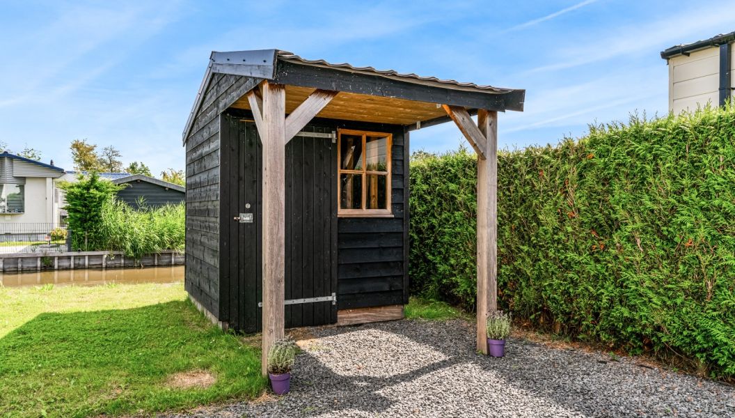 Aan de zijkant van de woning betreed u de vakantiewoning: entree, met aan de rechterhand twee slaapkamers, badkamer met douche en een toilet. Aan de linkerhand betreed u de woonkamer met ruime open keuken. Via de achtergevel met veel glas en dubbele openslaande deuren, komt u direct op het terras. De tuin grenst direct aan het water. De tuin is verder onderhoudsvriendelijk ingericht en is voorzien van een buitenberging.